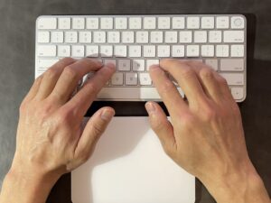 iMacの電源の入れ方がわからなかった(汗)。しかも今時の iMac は、本体に電源ボタンがついていないんですね。私は iMac G4 以降は PowerBook か PowerBook Proしか使っていなくて…、しかも今のはパソコンを開くと電源が入るので、電源を意識したことが無かった。